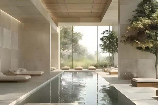 The interiors of Selvara villas are distinguished by expansive glass panels, high ceilings, and fluid indoor-outdoor transitions that connect residents to their lush surroundings. Premium materials such as marble flooring, bespoke wood finishes, and high-end fixtures create a sense of understated luxury. The design palette, inspired by natural tones and textures, promotes a sense of clarity, calm, and everyday comfort throughout the living spaces.